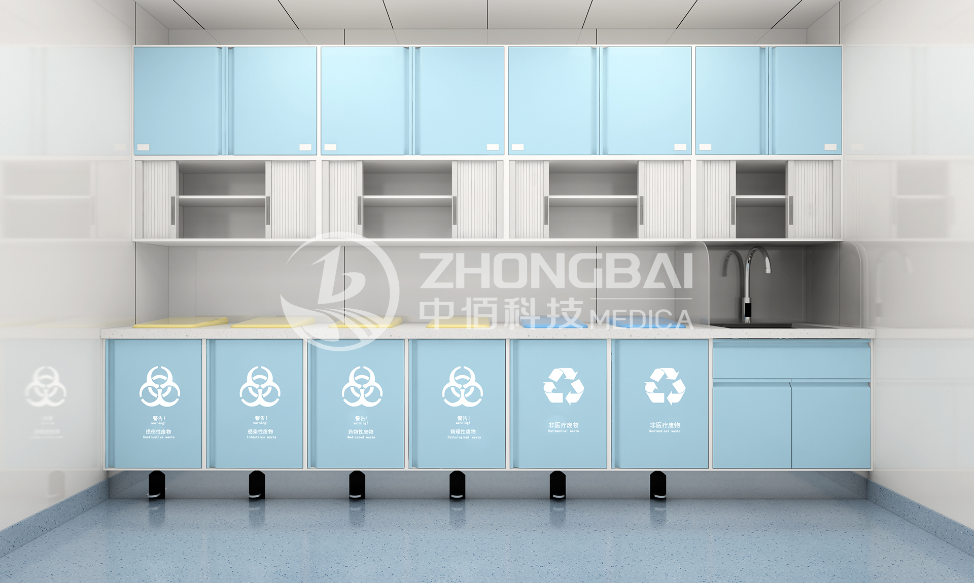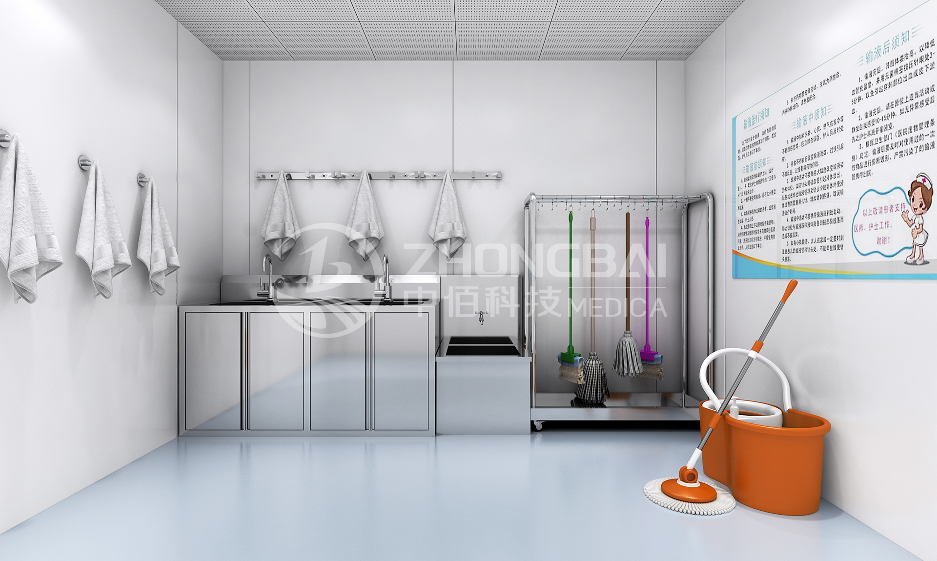 處置室一般在治療室近處,主要為醫(yī)護人員實施皮膚準備及清潔灌腸等操作,臨時存放治療產生的醫(yī)療廢物及需要浸泡消費的醫(yī)療物品的專用工作室。