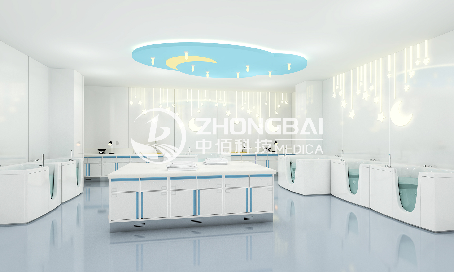 洗嬰室需要結合新生兒護理工作的模式和環(huán)境,進行整體設計,注重安全、預防感染,營造符合嬰幼兒特征的活潑可愛、安全溫馨的場景氛圍。